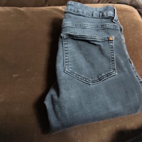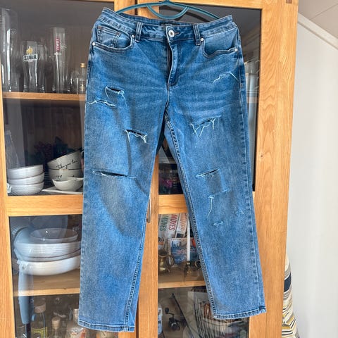 Jara jeans fra Vivikes i str. 40 i skinnimitasjon. Bomull, polyester, elastan.