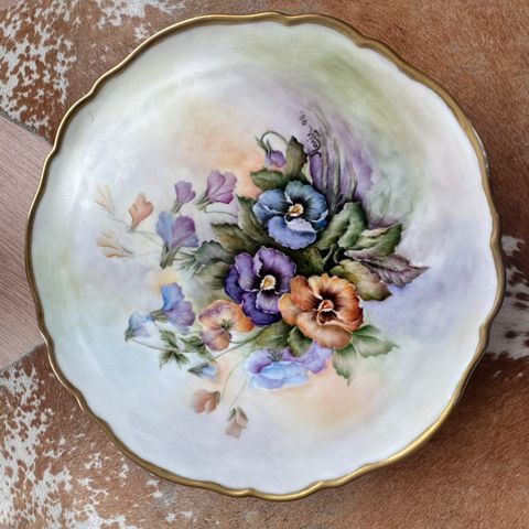 Håndlaget stettfat i keramikk initialer KE. (Har ikke funnet navnet på keramikeren)