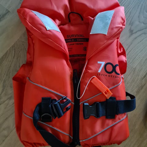 God flytevest for barn/junior. Passer personer melkom 30-50 kg. Belte og snøring. Pent brukt, ingen rifter eller skader.