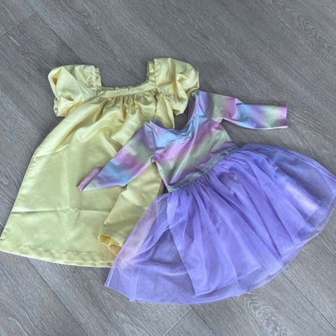 Spesialsydde brudepikekjoler i 100 % thai silke. Kjolene er i fargen syrin. De er aldri brukt da de ble for store.
