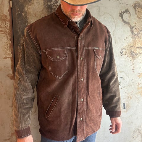 Trendy westernskjorte med overdel i dekorativ semsket skinn look med flotte broderier, brystlommer og dekorative knapper.