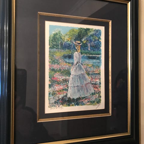 Bilde, 20 x 20 cm, av damehodei relieff på sort fløyelsbakgrunn. "Gullramme".