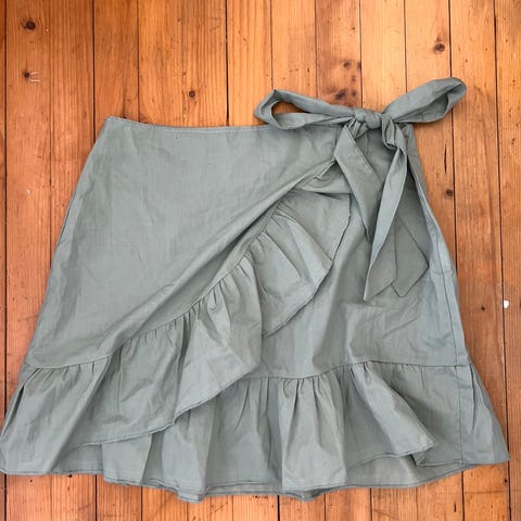 Supermykt skjørt med behagelig strikk i livet og splitt foran. Skjørtet er kun brukt en gang, og er størrelse S. Materiale: 94% bomull, 6% elastan. Jeg sender stort sett alltid første virkedag etter mottatt penger for frakt :)