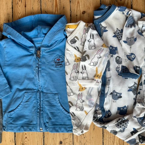 Selger pent brukte sparkedresser fra Joha i ull / bambus str 62 (rosa) og ull str 68 (mønstret), samlet for 300 kr.