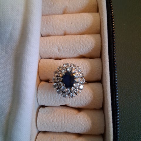 Str. 17. 18. Ny. IKKE sølv! Nydelig ring. Blå steiner. PRIS PER STK.