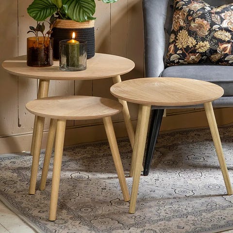 Disse høykvalitets sidebordene i tre er sjarmerende møbler i skandinavisk stil. De er et flott tillegg til stuen.