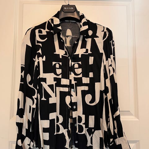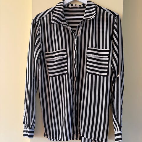 Bluse str.: M, men kan tøyes til str.L. Stoff.:Viskose 97%, elastan 3%. Pris.:100kr Tel.:98037073