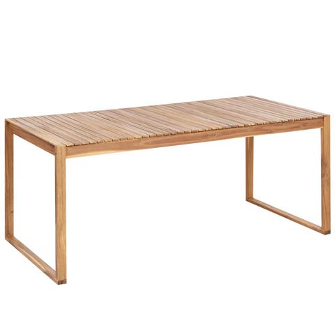 Vårt bord er laget av heltre teak, et av det beste treverket for langvarig møbler, det er kjent for sin holdbarhet og naturlige evne. En vakker vannbasert overflatebehandling brukes for å gi treverket en varm farge. Det har rene linjer og en enkel treplattform, og kan komfortabelt imøtekomme dine gjester. Med sin vannavstøtende funksjon og klassiske utseende, kan du plassere dette bordet hvor som helst i hjemmet - innendørs eller utendørs!