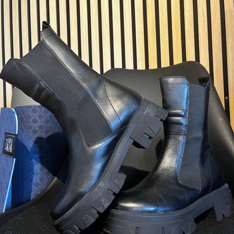 Som nye sorte boots i str. 40 selges. Ca 49-50cm i lengden fra sålen og opp på fremsiden.
