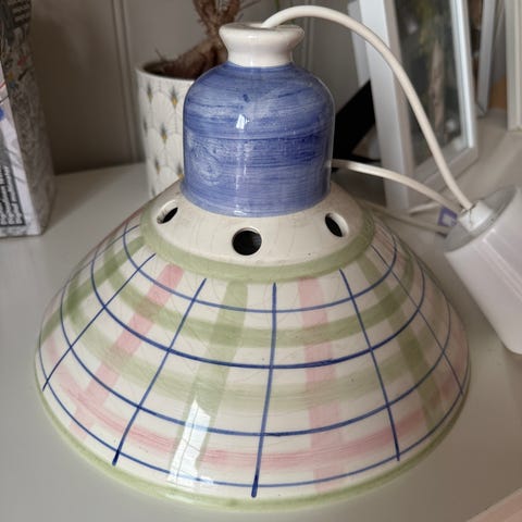 Keramikk, håndlaget, skomakerskjerm, pendel. Lampe, hengelampe