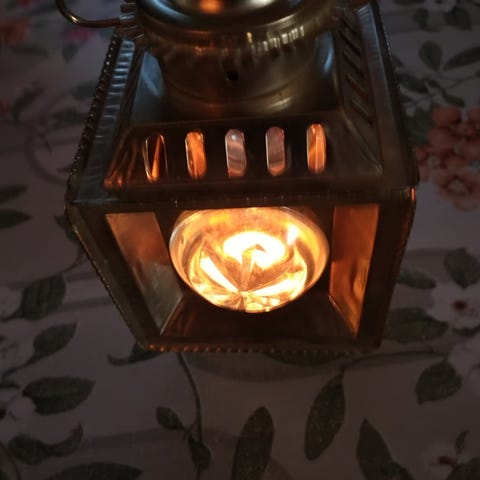 Vintage bordlampe med håndlaget skjerm