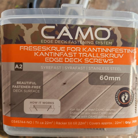 Camo terraseskruer for skjult innfestning i A4,