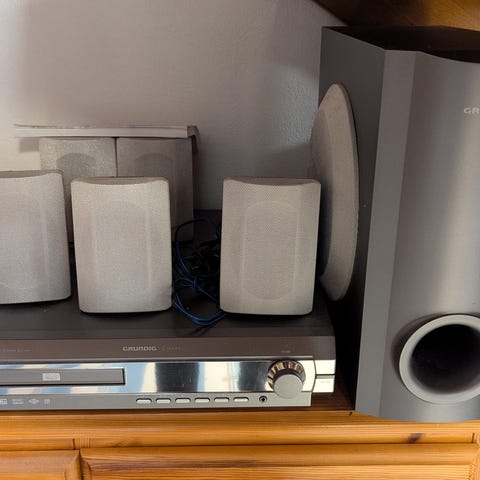 Panasonic 5+1 hjemmekino, god lyd. Spilleren virker, men lager av og til ulyder. (mulig sluring i cd drift). Analogt.