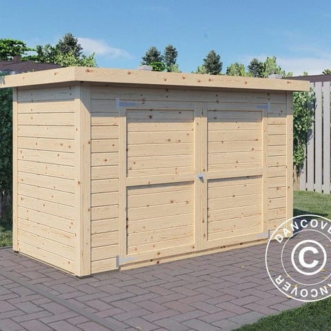 Oppbevaringsskjulet i tre er enkelt å montere. Vennligst merk at tre er et naturlig produkt og kan ha småfeil.
