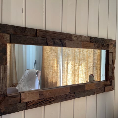 Rammen er laget av heltre tresville. Tresville er den rektangulære støtten til skinnene på jernbanespor. Det grove utseendet på treverket og håndverket øker salongbordets spektakulære retrostil. Hvert trinn i prosessen utføres med den største omhu, enten det er polering, maling eller lakkering. De vakre trekornene gjør hvert speil unikt og litt forskjellig fra det neste.
