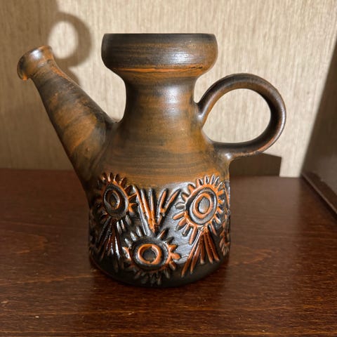 Gammel tønne av keramikk/med 6 beger+1 beger med hank, ca50 talls,hentes på Tveita i oslo eller sendes pr post (tilegg)