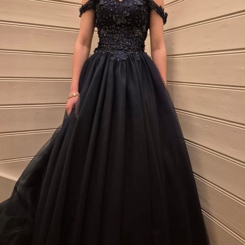 Pen svart kjole meg blonder, pent brukt