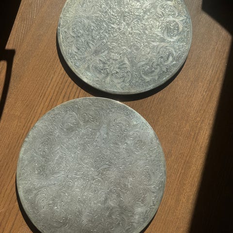 Nydelig og dekorative til julebordet! Designet for å holde tynne lys. Slike vakre små lysestaker er sjelden vare, sølvplett. Selges samlet