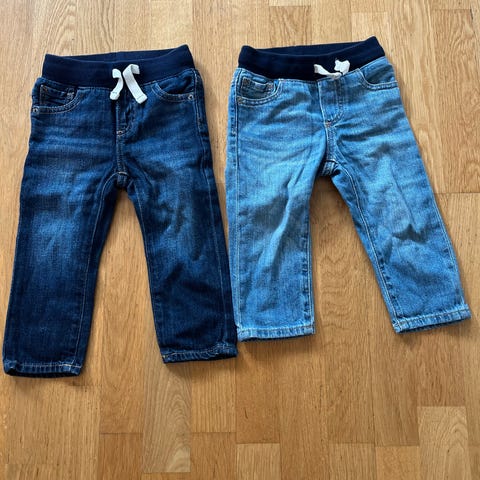 2 stk myke og gode jeans i blå tone. Behagelig å bevege seg i. Pent brukt. merke reflex og hm. Str.80. Sender gjerne🌟
