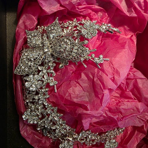 Selger et nydelig diadem til brud. Diademet har en enkel rad med blanke stener. Kjøpt nytt, og brukt en gang.