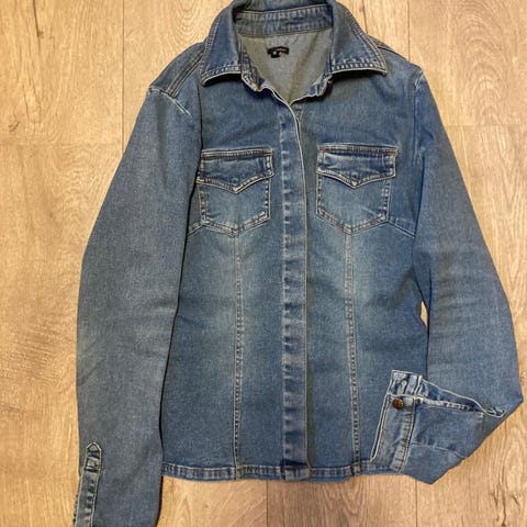 Denim skjorte Topp fra VeraModa. Liten Str. M. Passer Str. S. Stretch. Røyk- og dyrefritt. Pent brukt. Selger Kr.100,-. Pris er satt. Tar Vipps.