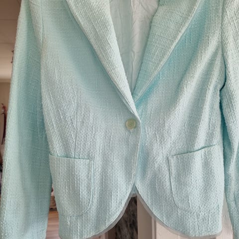 Lys blå drakt, ikke brukt, fra Marella, Italia Jakke , litt innsiget og smalt skjørt.