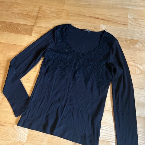 Sort pen topp med perler fra ZORBE. Str. S. 95% viscose, 5% elastan. Røyk- og dyrefritt. Kun prøvd. Som ny. Selger Kr.199,-. Pris er satt.