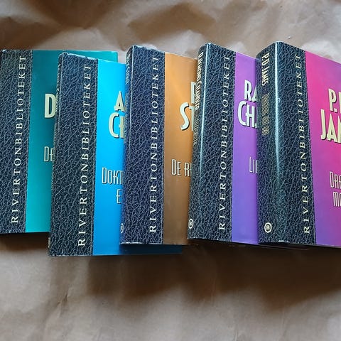 Bøker fra Rivertonbiblioteket, De Norske Bokklubbene, Oslo. Alle bøkene med omslag - enkelte med små bretter/rifter. Bøkene i seg selv - er meget pene.