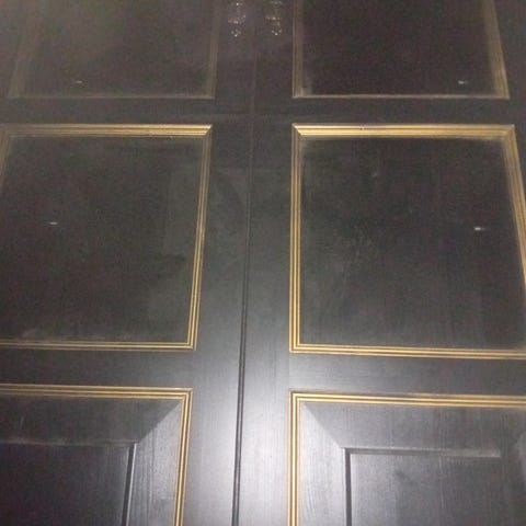 Veggskap med glass i bondestil. Høyde 91cm, bredde 61/76cm og dybde 20/28cm. Må hentes.