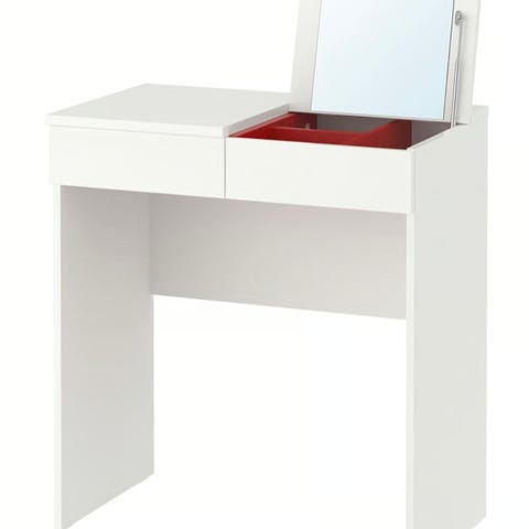 Dette sminkebordet vil gjøre et perfekt tillegg til soverommet eller garderoben med sitt elegante design og rene, hvite etterbehandling.