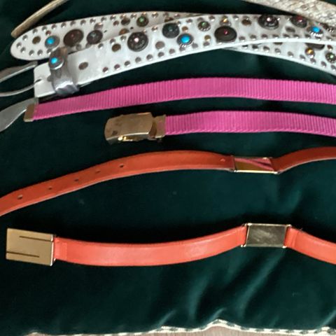 hvitt metall kjede. Lengde 1 m. Kan brukes både som beltet og lang halskjede. Pris 250 kr