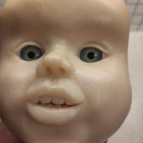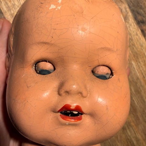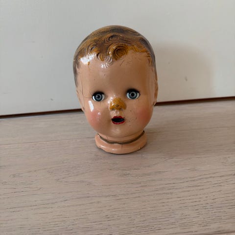 Gammelt dukkehode i celluloid