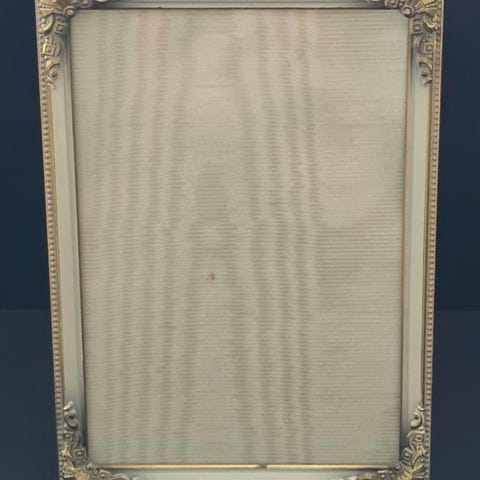 Retro/vintage brodert strameibilde med flott gullforgylt ramme og lys