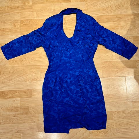 Nydelig blå kinakjole i silke. Str 176 / xs / S