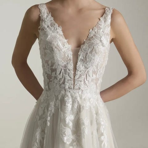 Nydelig brudekjole fra Cosmobella (Milano), med perlebroderier, åpen rygg og dyp utringning. Kjøpt ny høsten 2015 (13.500 kr), brukt en gang i 2017. Str. 8, passet min str. M/38-kropp og 171 cm perfekt. Må en tur til skredder for å feste foldene på rumpa igjen (det måtte jeg også før bruk). Ellers i fin stand. Ta kontakt for spørsmål eller prøving.