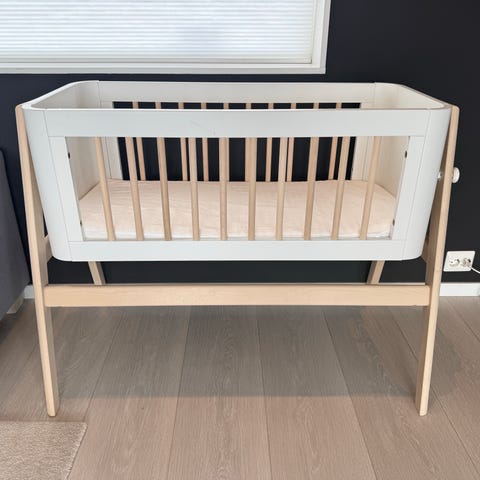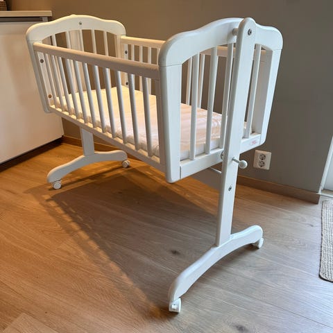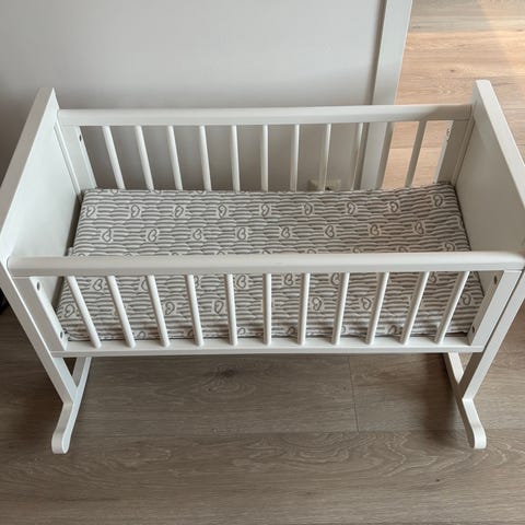 Troll babyvugge nesten ikke brukt, ser fortsatt ut som ny. . Meget fin vugge med en krone i front. Følger med madrass.
