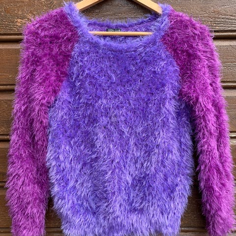 Flott genser med paljetter str.122/128, 6-8 år selges. 15% ull, 20% bomull, 65% akryl.