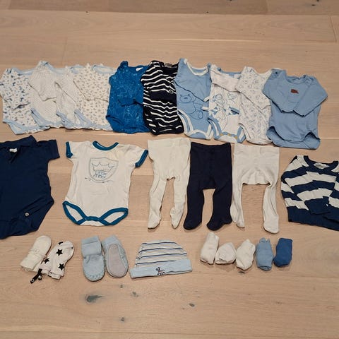 Alle klærne er hele og fine. Ikke hull eller flekker. Noen av klærne er ikke brukt.