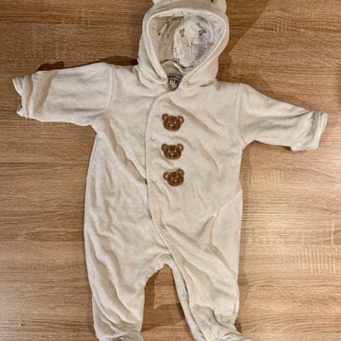Pent brukt teddydress i størrelse 62 selges. Avtagbar hette.