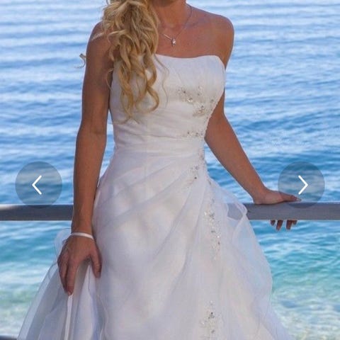 Maggie Sottero Brudekjole i chiffon m/slep og veske + chiffon slør og underkjole