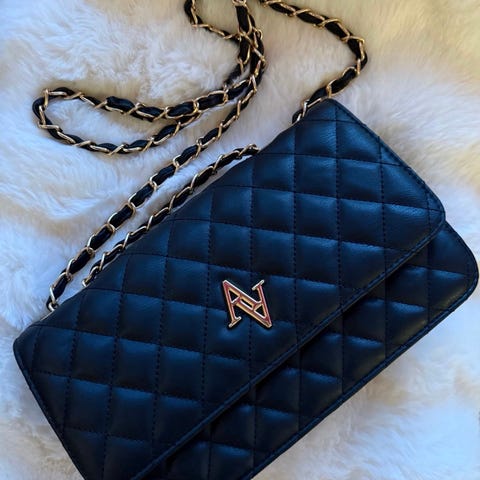Gullsekk i eksklusivt italiensk skinn selges, brukt kun én gang og fremstår derfor som helt ny.