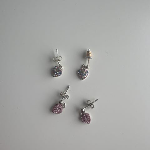 Supersøte øredobber i metall dekket med strass. Helt nye i emballasje. Jeg sender stort sett alltid første virkedag etter mottatt penger for frakt :)