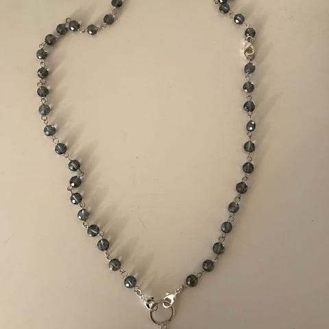 Jeg selger sølvkjede med gullkuler og svarte onyxsteiner med veldig lite bruk.