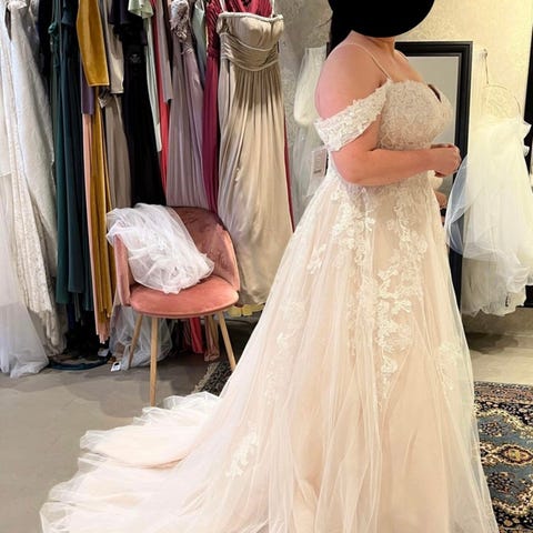 Tilpasset til min form, nydelig kjole, innsydd på skuldrer