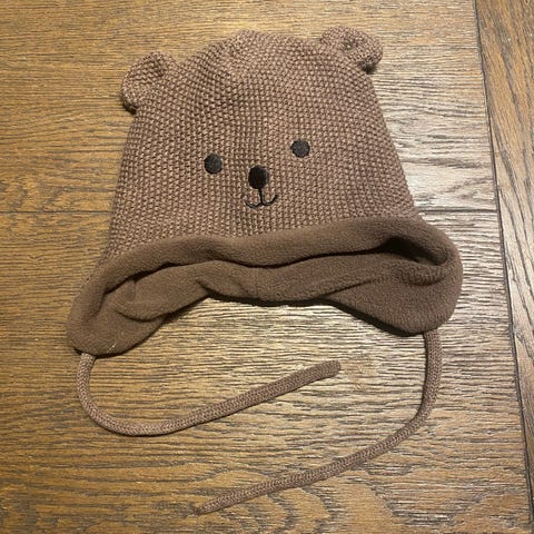 Selger lite brukt lue som er fôret i str 62/68. Brun farge. Veldig god og varm lue.