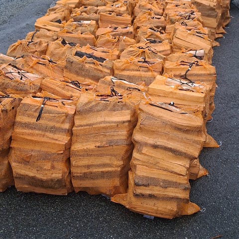 Veden er tørket i storsekk før den blir lødd over i småsekker før levering.