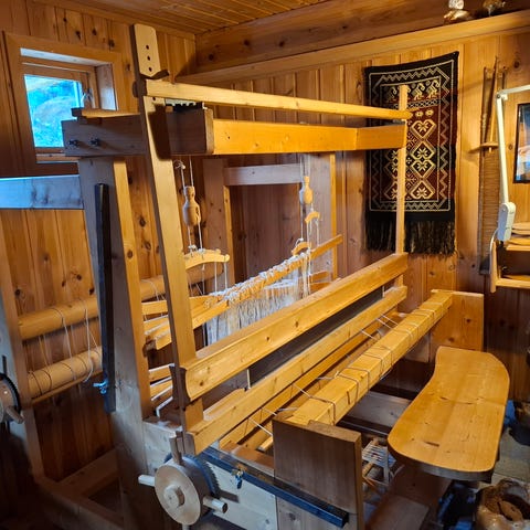 Trenger sårt en ny eier som kan bruke den og vet og sette pris på den. Må hentes i Elverum. Veven er håndlagd, ikke fabrikkprodusert. Meget pent utført arbeid. Står demontert nå.