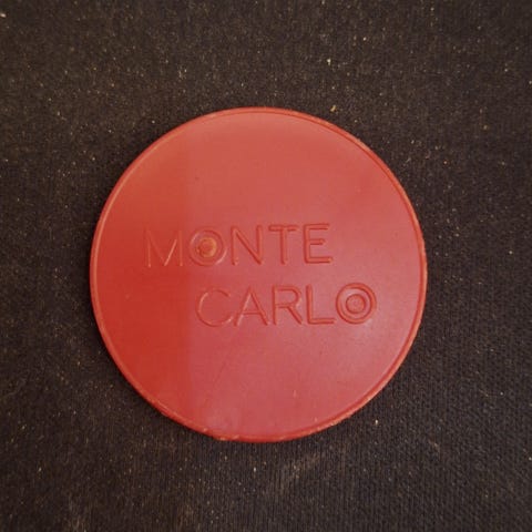 En større spillemynt fra Las Vegas, på den andre står det electronic amusement EAL, gaming tolken. Sendes gjerne