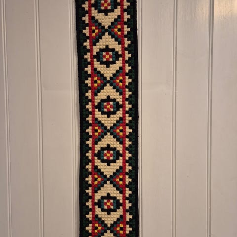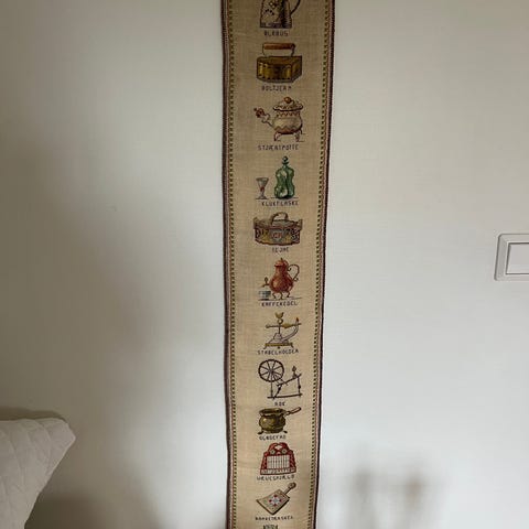 Hjemmebrodert klokkestreng ca. 100 cm lang med oppheng.
