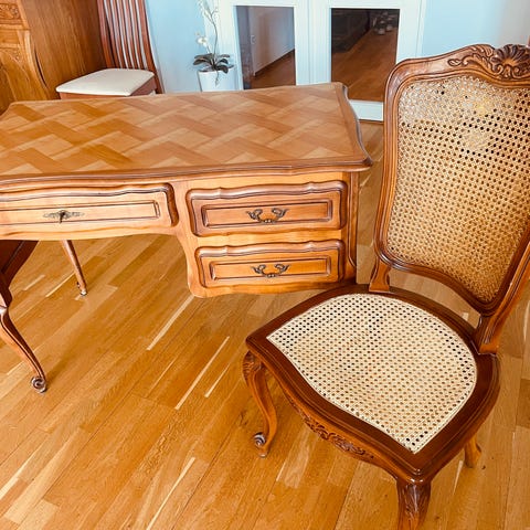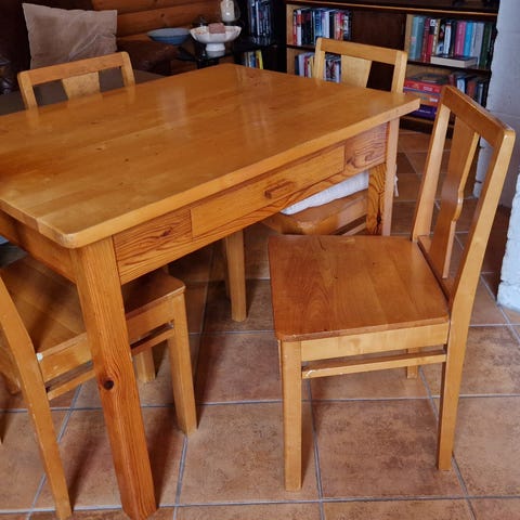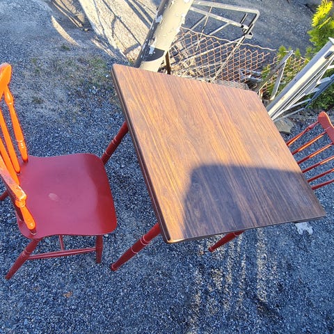Rosemalt gammelt bord og stol for barn 1 000 kr